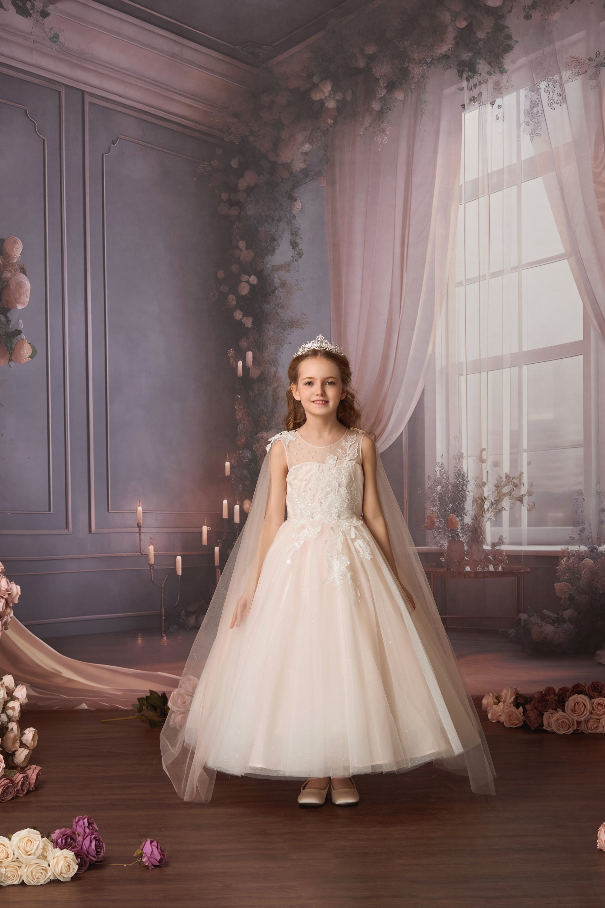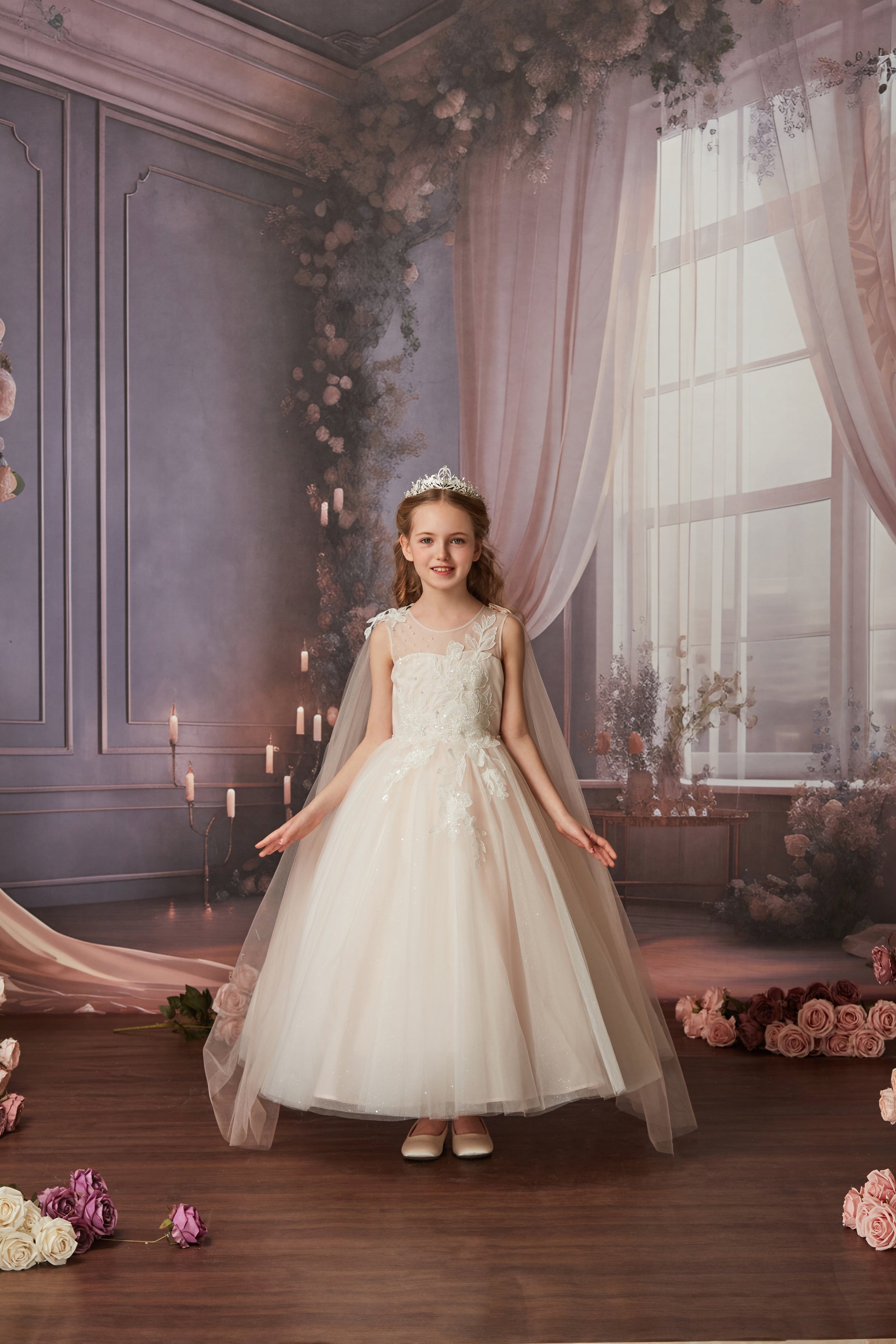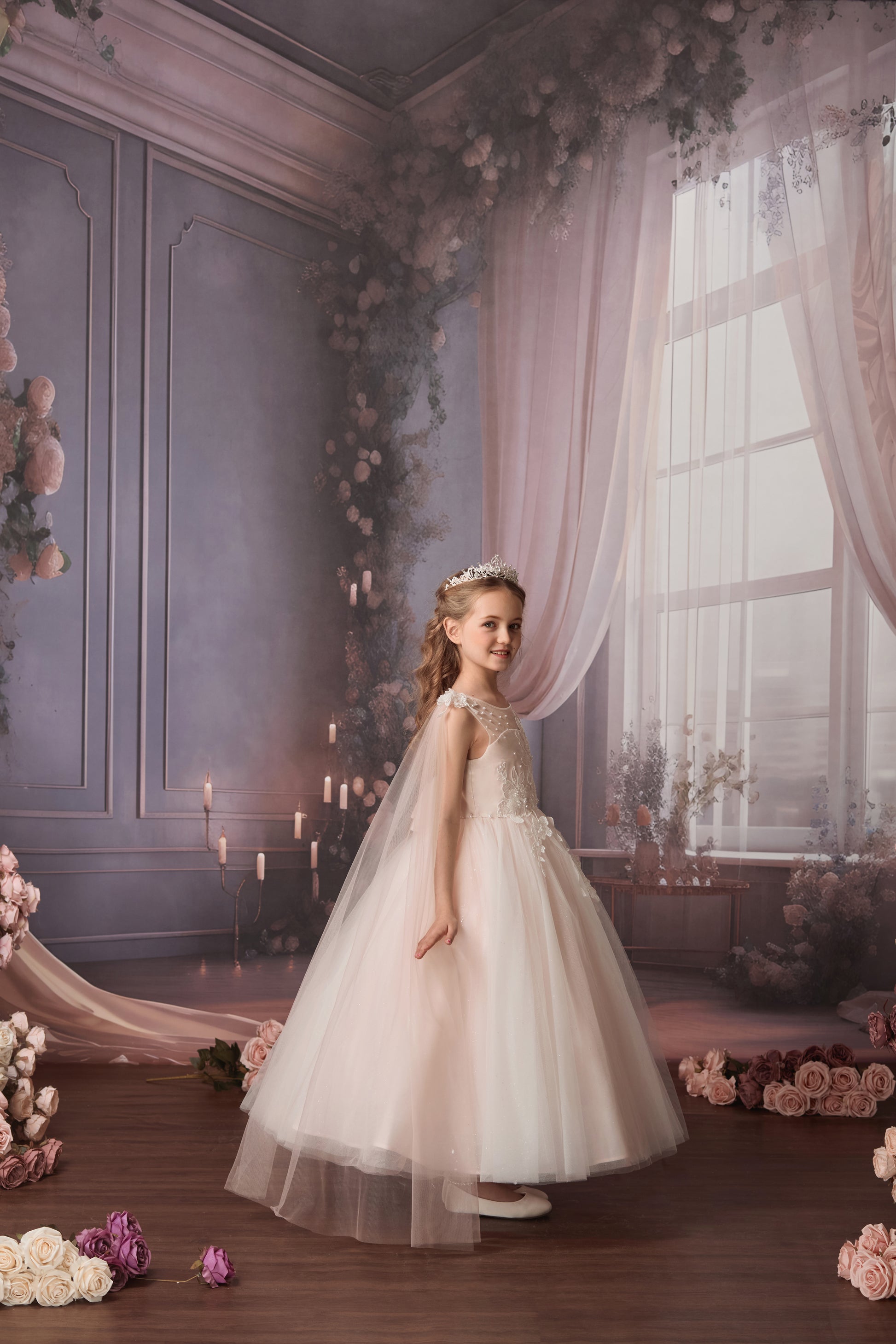This exquisite white tulle dress perfectly blends fantasy and luxury for little princesses. The skirt is made of multiple layers of soft, sheer tulle, with an ethereal lightness that evokes a magical, fairy-like charm.