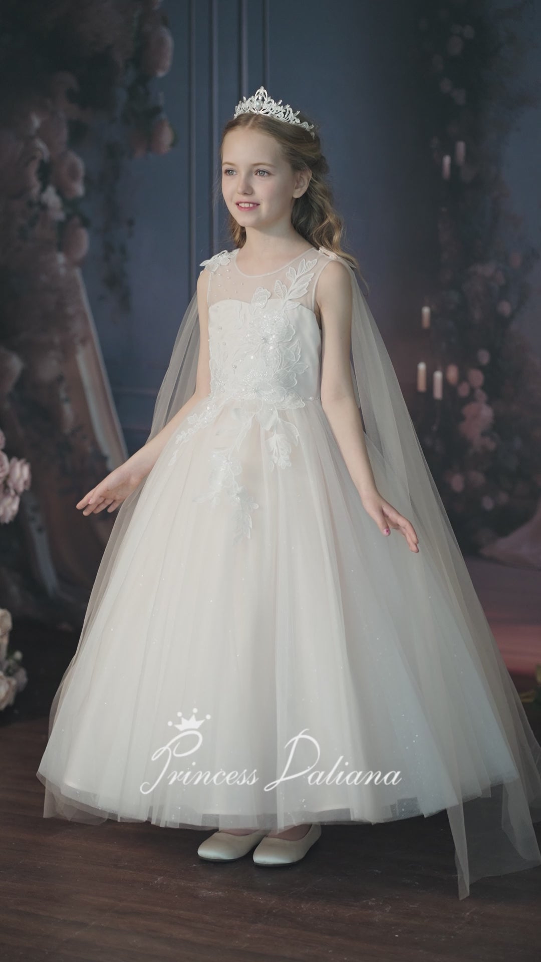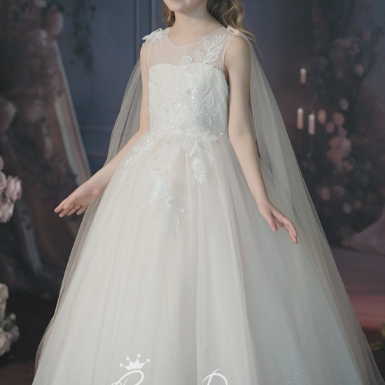 Inside the skirt, layers of glitter-embedded tulle catch the light, creating a subtle shimmer with every step. The voluminous yet lightweight silhouette, built from layers upon layers of delicate tulle, embodies a perfect fusion of royal princess charm and translucent grace—ideal for making any little one feel enchanting and elegant.