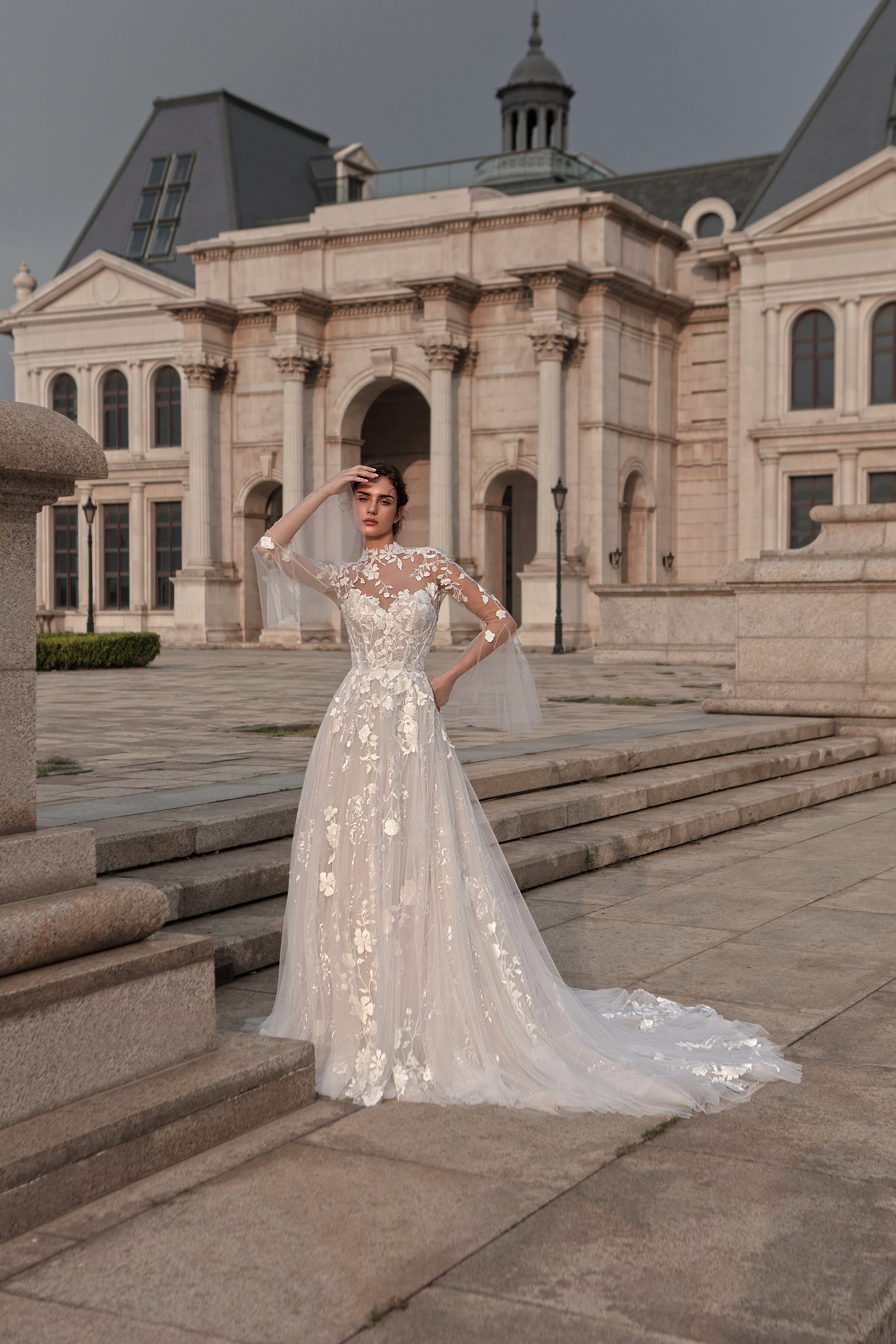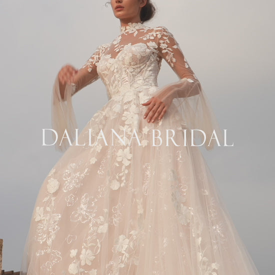 "Enchanted Lace A-Line Gown with Butterfly Sleeves"This dreamy dress wraps you in delicate lace florals that perfectly enhance your silhouette. The fluttering butterfly sleeves and full skirt create magical movement with every step - like walking through a blooming garden!